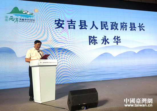 安吉縣人民政府縣長陳永華在論壇開幕式致辭。 (中國臺灣網 李航 攝)