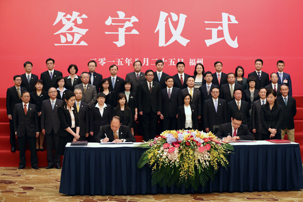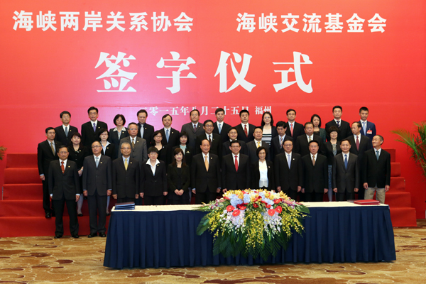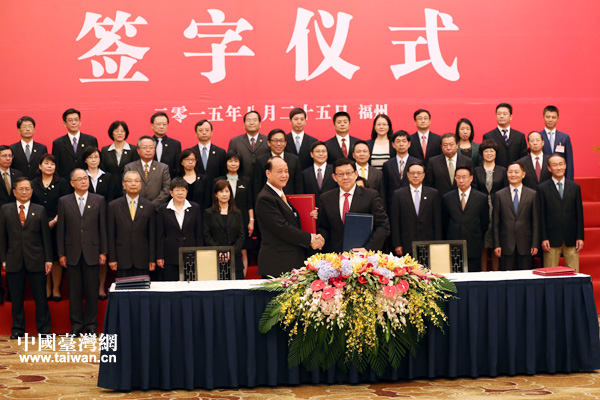 25日上午,海協(xié)會、臺灣;鶗I(lǐng)導(dǎo)人第十一次會談在福州舉行。當天下午,雙方簽署了《海峽兩岸民航飛行安全與適航合作協(xié)議》《海峽兩岸避免雙重課稅及加強稅務(wù)合作協(xié)議》,這是2008年6月兩會恢復(fù)制度性協(xié)商以來簽署的第22、23項協(xié)議。(中國臺灣網(wǎng) 何建峰 攝)