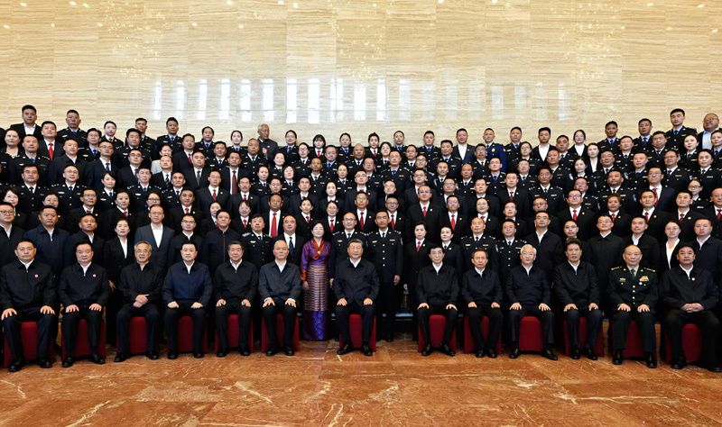 8月20日下午,中共中央總書記、國家主席、中央軍委主席習近平在拉薩親切接見西藏自治區政法干警代表,并同大家合影留念。新華社記者 殷博古 攝